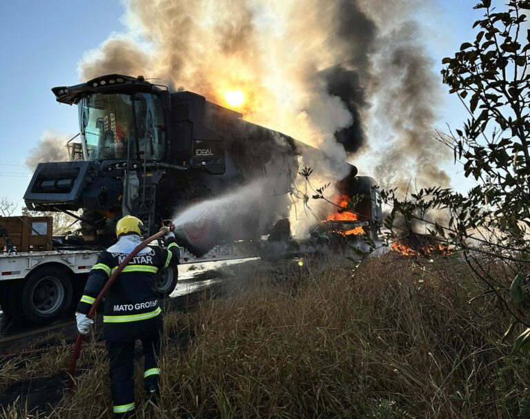 O Corpo de Bombeiros Militar extinguiu incêndio, na manhã desta terça-feira (01), em uma carreta do tipo “pranchão”, na BR-070, que liga Primavera do Leste