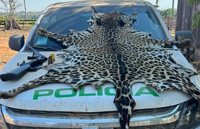 Uma pele de onça-pintada foi encontrada, nessa sexta-feira (4), durante a “Operação Amazônia”, da Polícia Ambiental em conjunto com a Força Tática, contra desmatamento ilegal,