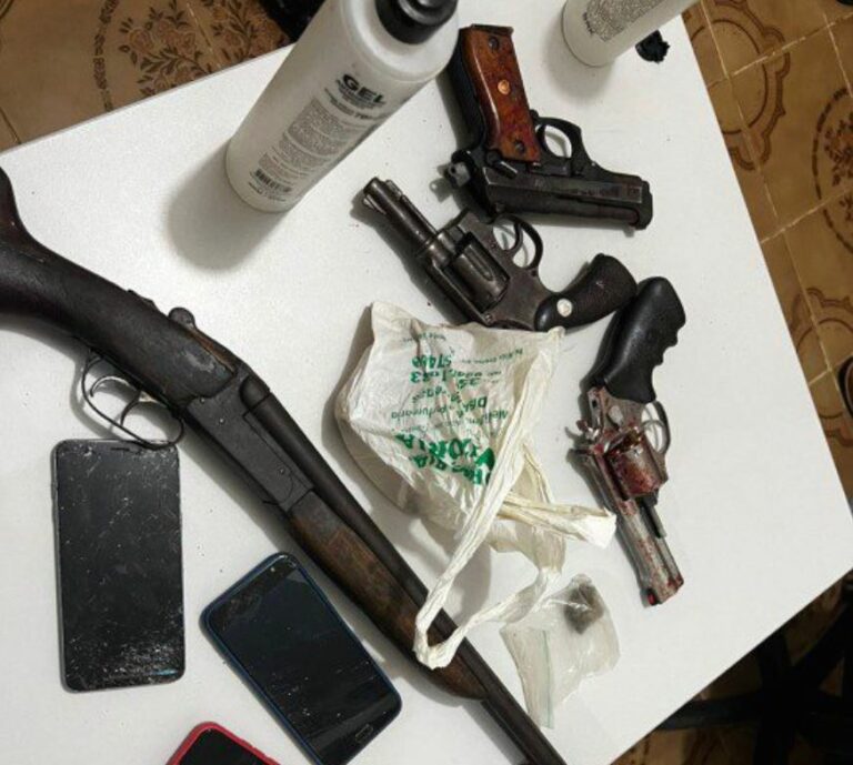Policiais militares de Várzea Grande realizaram a maior apreensão de armas de fogo da PMMT, no ano de 2023, no final da noite desta terça-feira