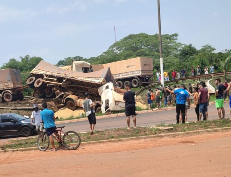 Duas carretas batem de frente e motorista da Ammagi morre na hora na BR-364, em Cacoal