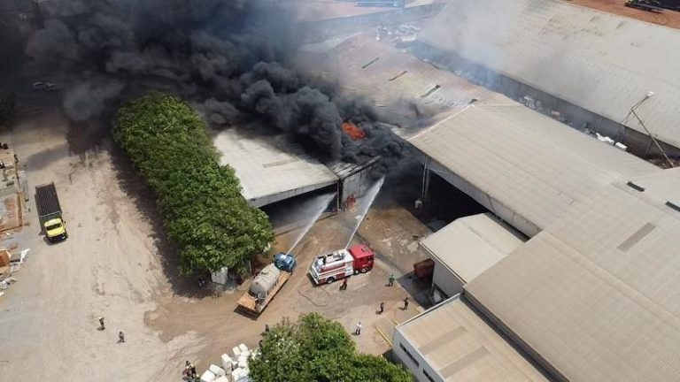 Um incêndio de grandes proporções atingiu uma empresa de processamento de algodão do grupo Bom Jesus, e mobilizou o Corpo de Bombeiros no final da