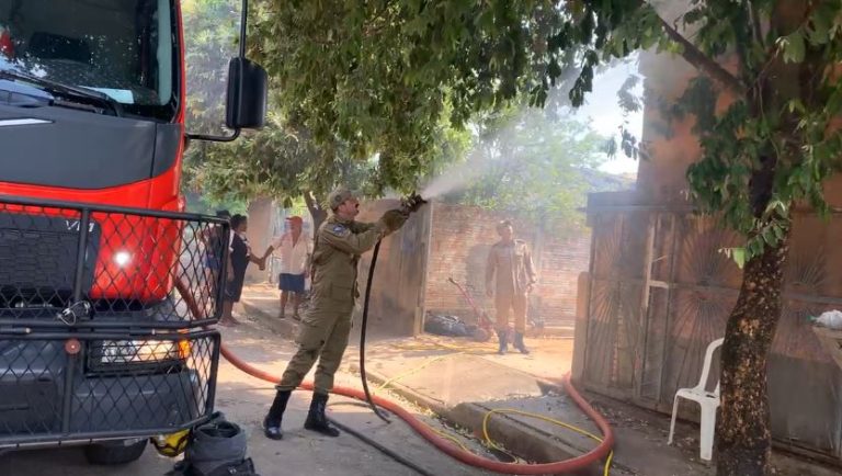 Um incêndio de grandes proporções deixou uma casa totalmente consumida pelas chamas no início da tarde desta terça-feira (12) em Alta Floresta. Conforme registro de