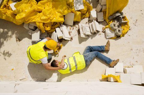 Enquanto instalava vigas pré-moldadas em uma construção, o auxiliar de carpinteiro caiu em um buraco e teve a perna esquerda esmagada por uma viga que