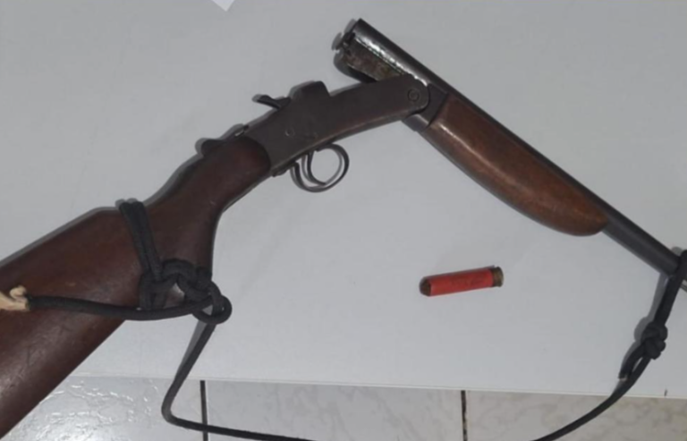 Policiais militares do 3º Batalhão prenderam em flagrante um homem de 45 anos pelos crimes de ameaça e porte ilegal de arma de fogo, em