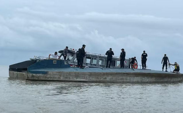 O submarino de 20 metros de comprimento e quase 3 metros de largura foi encontrado por pescadores em uma praia fluvial próxima ao município de