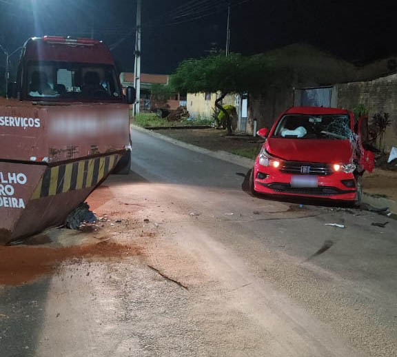 Alta Floresta: Homem fica ferido após perder o controle de carro e bater em caçamba de entulhos