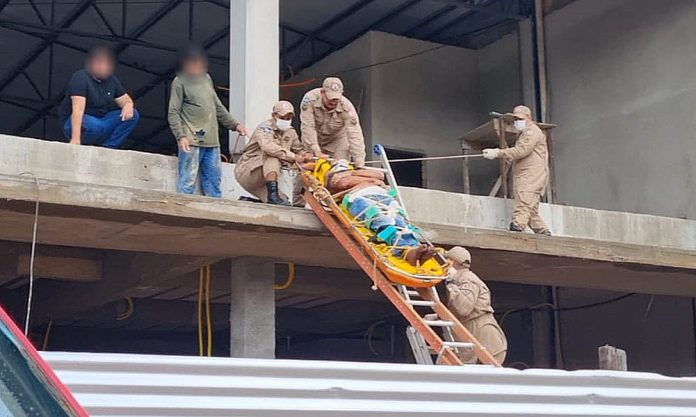 Um trabalhador de 62 anos foi socorrido pelo Corpo de Bombeiros na tarde desta segunda-feira (13), após cair de um andaime com aproximadamente três metros