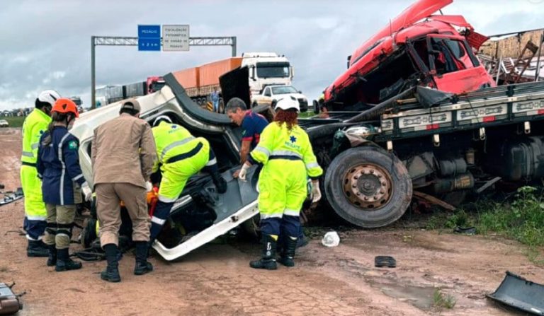 Colisão entre caminhões deixa três feridos na BR-163, em Sorriso