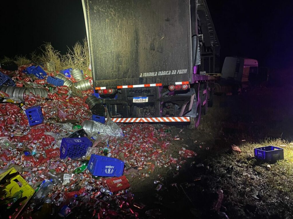 Na noite de ontem (29), por volta das 22h30, um acidente envolvendo um caminhão carregado de bebidas foi registrado na rodovia MT-320, próximo ao km 185, em Nova Canaã do Norte.