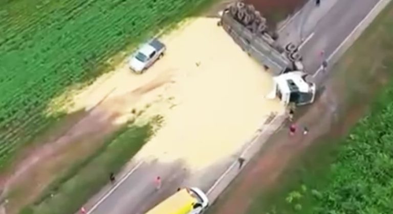 Um acidente envolvendo uma carreta graneleira foi registrado na manhã deste sábado (6) em um trecho da rodovia federal entre os municípios de Sinop e