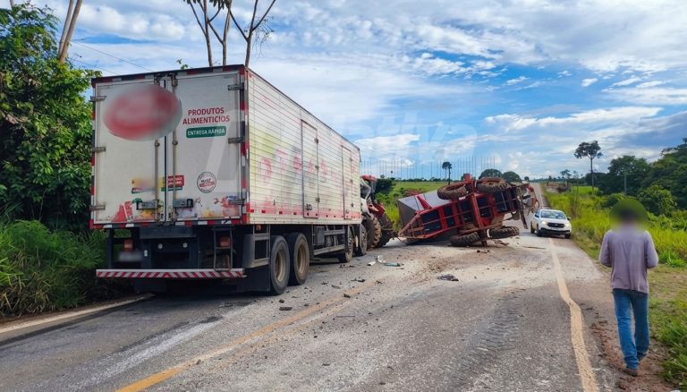 Um acidente de trânsito envolvendo um caminhão de carga e um trator agrícola foi registrado na segunda-feira (23), no km 52 da rodovia MT-208, no