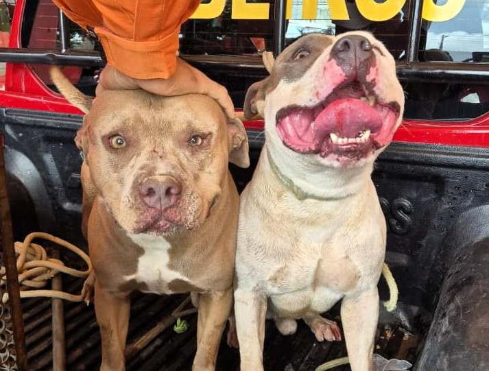 O Corpo de Bombeiros Militar de Mato Grosso realizou, na tarde de quinta-feira (19), a contenção e remoção de dois cães da raça pitbull que