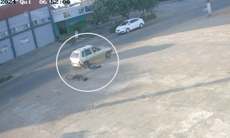 Uma ciclista foi atropelada na manhã desta quinta-feira enquanto pedalava na avenida Mato Grosso em Alta Floresta. Câmeras de segurança flagraram o momento em que um