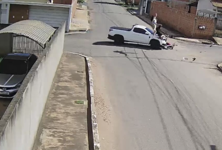 Um acidente envolvendo um Fiat Strada e uma motocicleta deixou um casal ferido em Jaciara (140 km de Cuiabá) nesta terça-feira (9). Uma câmera de