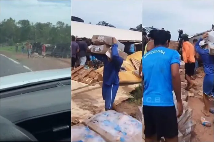 A carga de um caminhão de câmara fria foi saqueada após um acidente na manhã de quarta-feira (22) na BR-070, no Município de General Carneiro