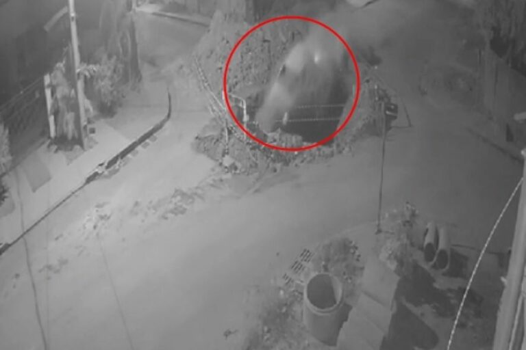 Um veículo foi filmado caindo em um buraco de uma obra na madrugada de domingo (23), no Bairro Jardim Liberdade, em Rondonópolis (216 km a