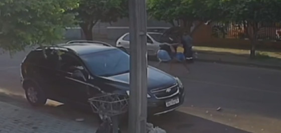 Uma câmera de segurança registrou o momento em que o vereador Zilmar Assis (UB), de 59 anos, é violentamente agredido pelo também vereador Silvio
