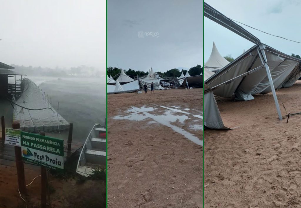 Moradores do município de Paranaíta foram surpreendidos na tarde desta quarta-feira (06) com um temporal que promoveu destruição na ilha onde será realizado o Fest Praia 2023. As informações obtidas em primeira mão pela redação do site Nativa News, são de que a estrutura, como barracas e outros, foi destruída pela ação das rajadas de vento que passaram no local. Com chuvas registradas na zona rural do município, em toda a região, fortes ondas se formaram, movendo a passarela recém instalada.