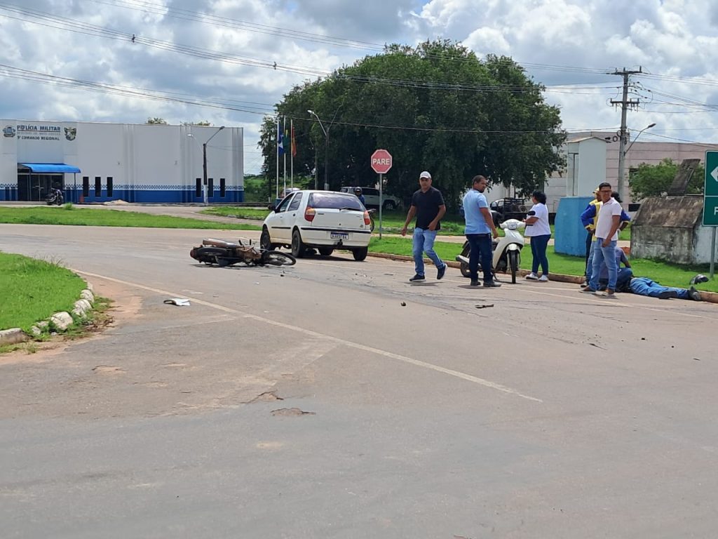 Um acidente de trânsito foi registrado no início da tarde desta terça-feira (13), por volta das 13h30, no Trevo São Cristóvão, em frente ao Batalhão da Polícia Militar, na Avenida Ariosto da Riva. A ocorrência envolveu um Fiat Palio e uma motocicleta Honda Pop.