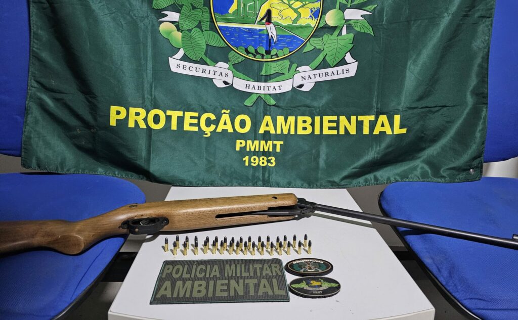 Policiais militares do Batalhão Ambiental prenderam em flagrante um homem de 44 anos por porte ilegal de arma de fogo, no final da noite desta sexta-feira (05.07), em Alta Floresta. Na ação, uma espingarda e 32 munições foram apreendidas pela PM.