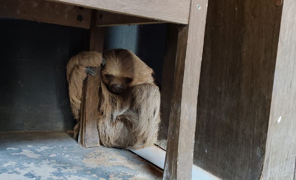 Uma visita inusitada foi flagrada na manhã deste sábado (16) no bairro Boa Nova 1 em Alta Floresta. Um morador foi surpreendido por um bicho preguiça dentro de casa. O animal estava tranquilo em baixo de uma cadeira na cozinha. A presença do animal foi percebido pela mãe do morador, que se abaixou para pegar a chupeta da neta que havia caído. “Quando abaixei pra pegar a chupeta eu vi aquele negócio em baixo da cadeira, tomei um susto grande e comecei a chamar pelo meu filho, que viu logo que se tratava de um bicho preguiça”, relatou a mulher à redação do site Nativa News.