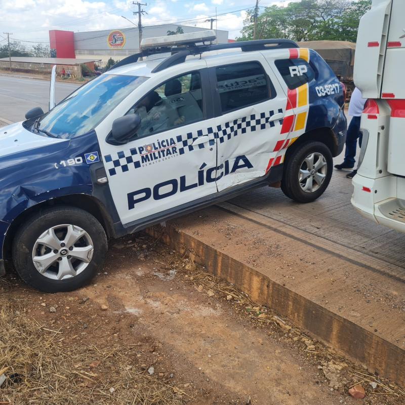 Dois policiais militares se envolveram em um acidente com carreta, nessa segunda-feira (11), na BR-163, próximo ao posto de combustível Aldo Locatelli, na saída de Cuiabá. Segundo a assessoria da Polícia Militar, os militares estavam a caminho de uma ocorrência e não ficaram feridos. Caminhoneiro também não se feriu.