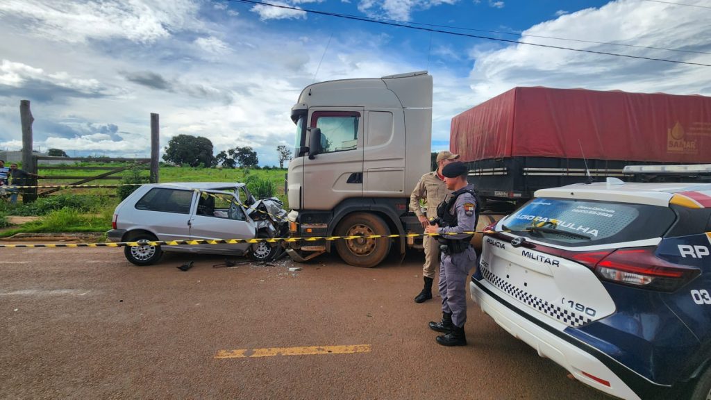 Um grave acidente foi registrado na tarde desta sexta-feira na estrada Jacinta, em Sinop. Um Fiat Uno prata colidiu frontalmente com uma carreta Scania que estava estacionada no acostamento. O condutor do automóvel, um homem de 59 anos, teve o óbito constatado no local pela equipe do Corpo de Bombeiros.