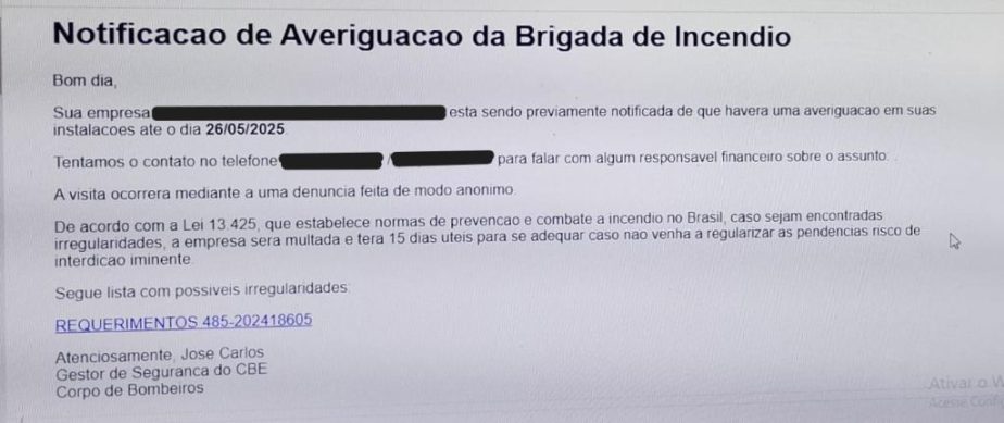 A prática, identificada desde o ano passado, já atingiu diversos estados brasileiros e agora vem sendo novamente registrada em Mato Grosso. Os golpistas utilizam o nome e a identidade visual do Corpo de Bombeiros Militar para dar aparência de legitimidade às mensagens, que geralmente trazem informações falsas sobre vistorias, irregularidades em edificações e cobranças indevidas.