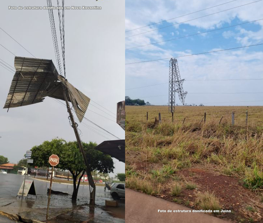 Em Juína, rajadas foram tão fortes que entortaram uma torre de energia no fim de semana. Já em Nova Xavantina, estabelecimentos foram destelhados nesta terça-feira, atingindo as estruturas de energia e interrompendo o fornecimento.