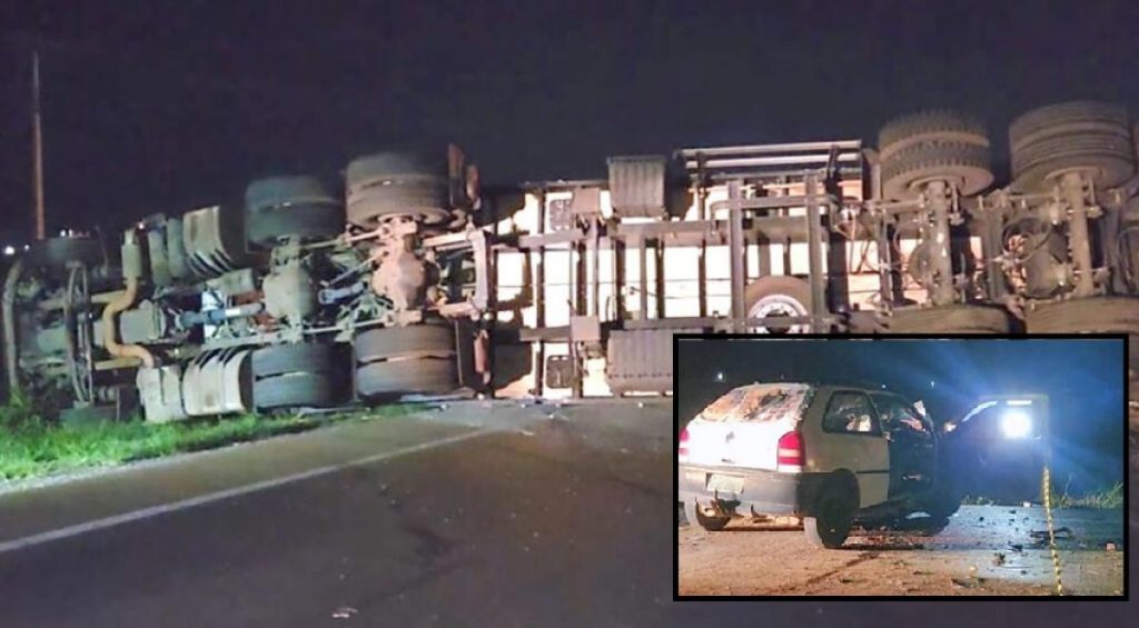 Uma pessoa morreu e outras 3 ficaram feridas em batida entre carro e carreta, na BR-163, em Sinop (500 km ao norte). Acidente foi registrado às 23h de sábado (30) e as causas ainda são desconhecidas.