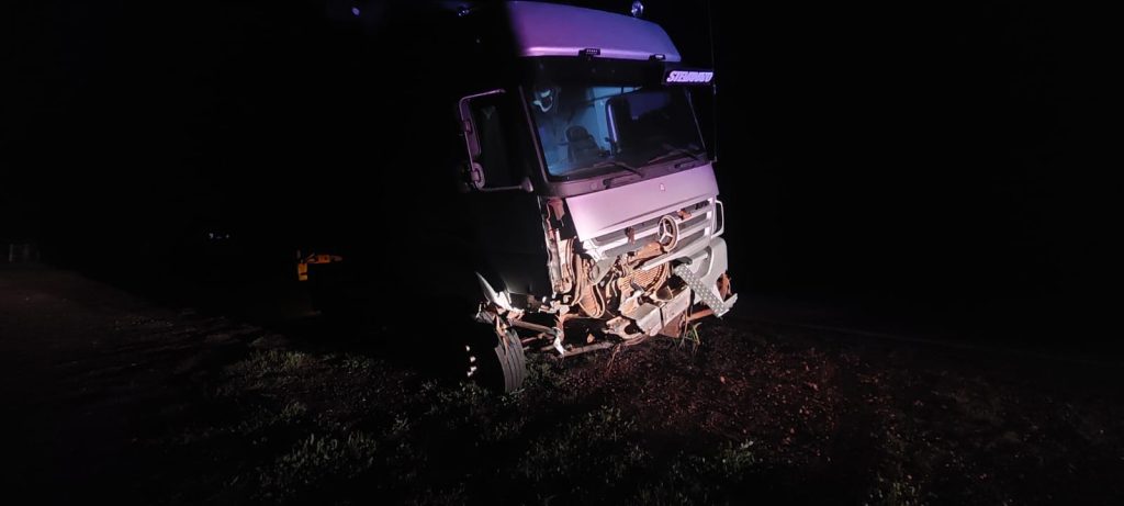 Após os procedimentos, a Fiat Strada foi removida por guincho da concessionária, enquanto o caminhão permaneceu no acostamento aguardando retirada.