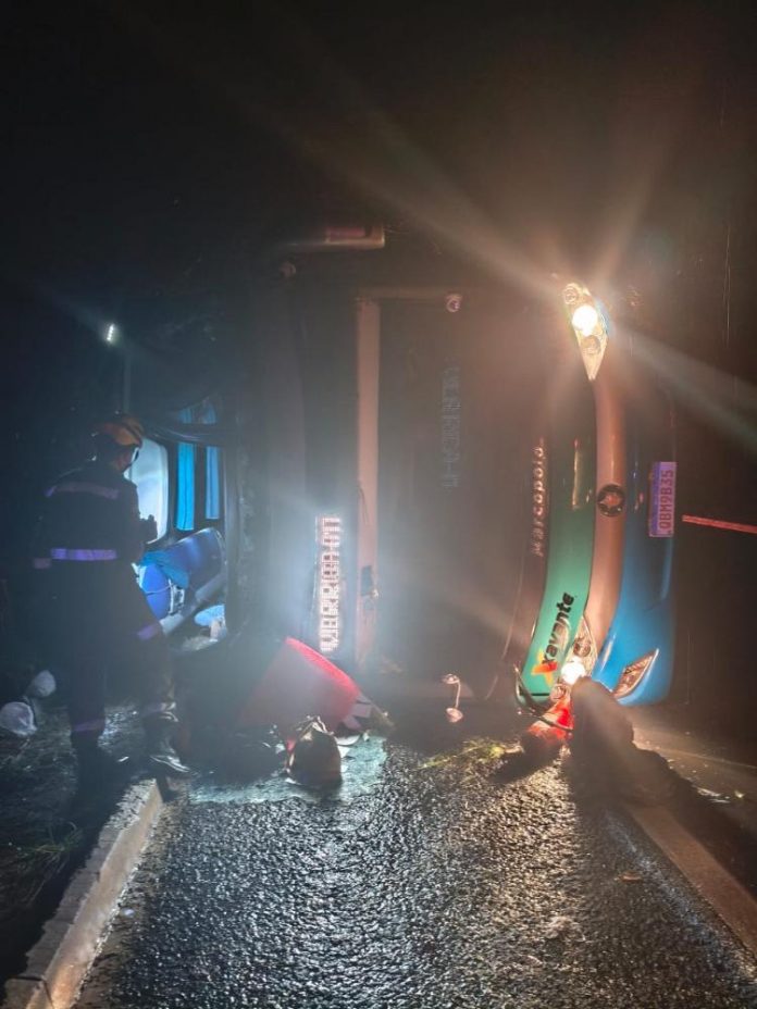 Um grave acidente foi registrado na madrugada desta segunda-feira (3), na rodovia GO-060, em Iporá (GO), envolvendo um ônibus de viagem que seguia de Vila Rica (MT) para Goiânia (GO). O veículo tombou após o motorista tentar desviar de uma árvore caída na pista.