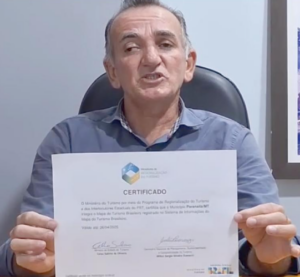 apta quanto ao recebimento de recursos, tendo em vista que, a cidade recebeu o certificado do Ministério do Turismo, válido até o dia 26 de abril de 2025, documento comprobatório de que o município está no caminho certo.