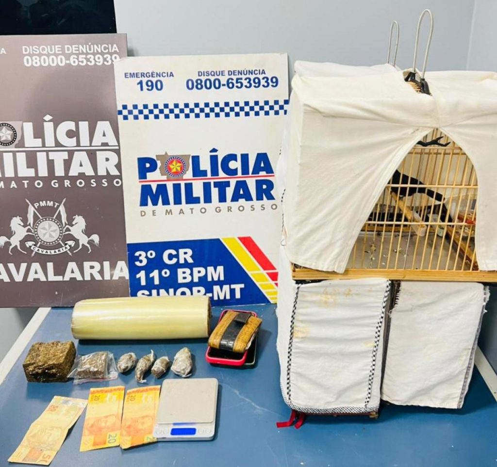 Dois homens foram presos na tarde desta terça-feira (1), após uma ação da equipe de Cavalaria da Polícia Militar, que resultou na apreensão de entorpecentes e de aves silvestres mantidas ilegalmente em cativeiro, em Sinop (500 km ao norte de Cuiabá).