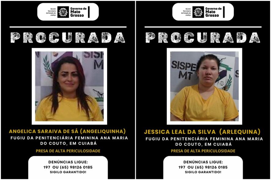 A outra foragida é Jéssica Leal da Silva, de 36 anos, conhecida como ‘Arlequina’. A mulher é considerada líder criminosa no Município de Juína, e responde a ações penais por tráfico de drogas. Conforme divulgado em nota pela Sejus (Secretaria de Estado de Justiça), o Soe (Serviço de Operações Penitenciárias Especializadas) presta apoio na segurança da unidade prisional.