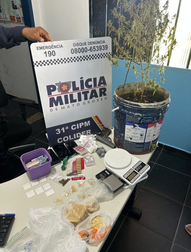 Uma ação da Polícia Militar resultou na prisão de um jovem de 19 anos e na apreensão de uma adolescente de 16, após a descoberta de um ponto de tráfico de drogas em uma residência na Travessa Universitária, região central de Colíder.