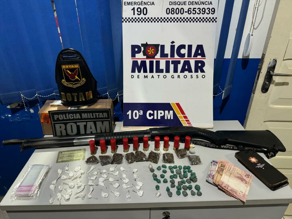 Policiais militares do Batalhão de Ronda Ostensiva Tática Móvel (Rotam) e da 10ª Companhia Independente de Aripuanã prenderam, na noite desta quinta-feira (24.10), um homem por tráfico e porte ilegal de arma de fogo no município.