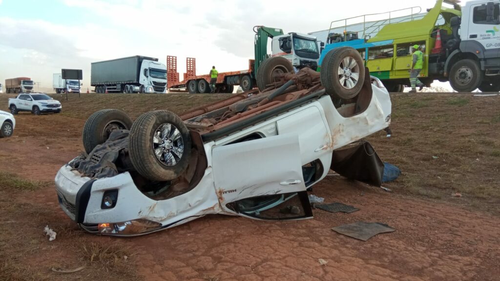 A camioneta Hilux, cor branca, que se envolveu no acidente, acabou sendo lançada para fora da pista e capotou numa das margens da rodovia federal. Os dois ocupantes não sofreram ferimentos, apesar dos estragos provocados após a batida. Ambos moram em Cuiabá e atuam como representantes comerciais de uma empresa agrícola.