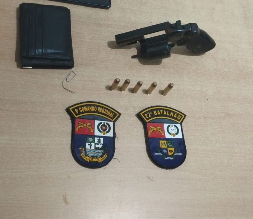 Na cabine do caminhão foi localizado um revólver da marca Rossi, calibre 38, com cinco munições intactas. O motorista foi detido e encaminhado para a delegacia de Polícia Civil.