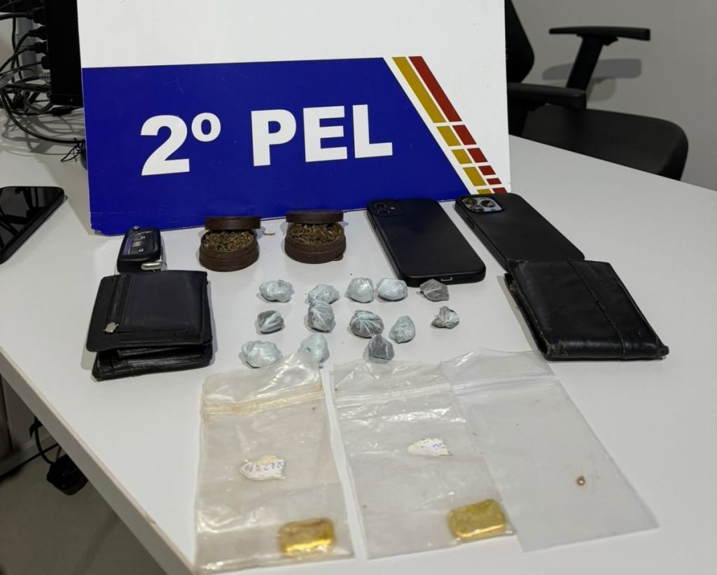 Na caminhonete, os policiais também encontraram dois dichavadores com resíduos de maconha e outras 13 porções da mesma substância escondidas sob o banco do motorista.