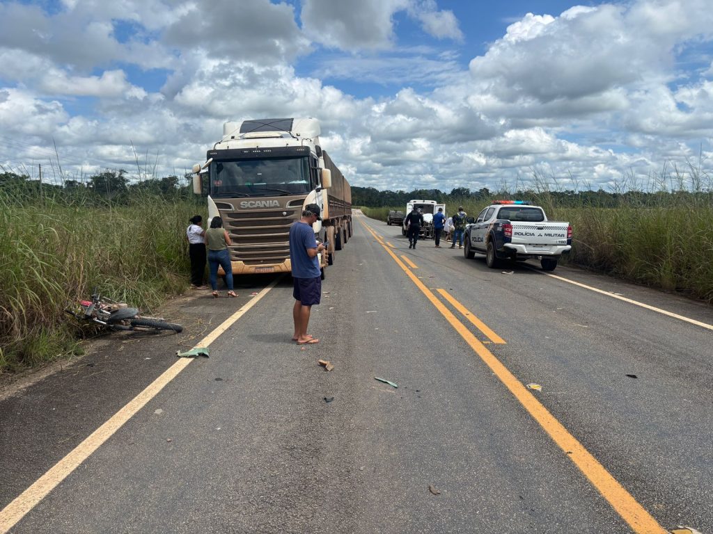 De acordo com informações da Polícia Militar, a equipe foi acionada após a comunicação de que havia um homem caído ao solo após colisão envolvendo uma motocicleta e um veículo de passeio, a cerca de 17 quilômetros do perímetro urbano, no sentido Alta Floresta.