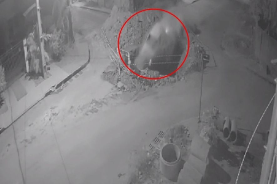 Um veículo foi filmado caindo em um buraco de uma obra na madrugada de domingo (23), no Bairro Jardim Liberdade, em Rondonópolis (216 km a sudoeste de Cuiabá). As imagens mostram quando o condutor, que dirigia um Fiat Uno, aparece na via e, apesar da sinalização, ele vai reto em direção à obra.