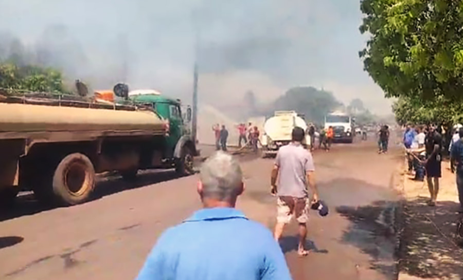 Duas casas de madeira foram destruídas pelo fogo, há pouco, na região central de Marcelândia. O fogo começou em uma residência e logo se espalhou para a outra. Cerca de oito caminhões pipa e diversos voluntários ajudaram brigadistas a combater as chamas, que foram debeladas. Em seguida foi feito rescaldo. Não houve feridos.